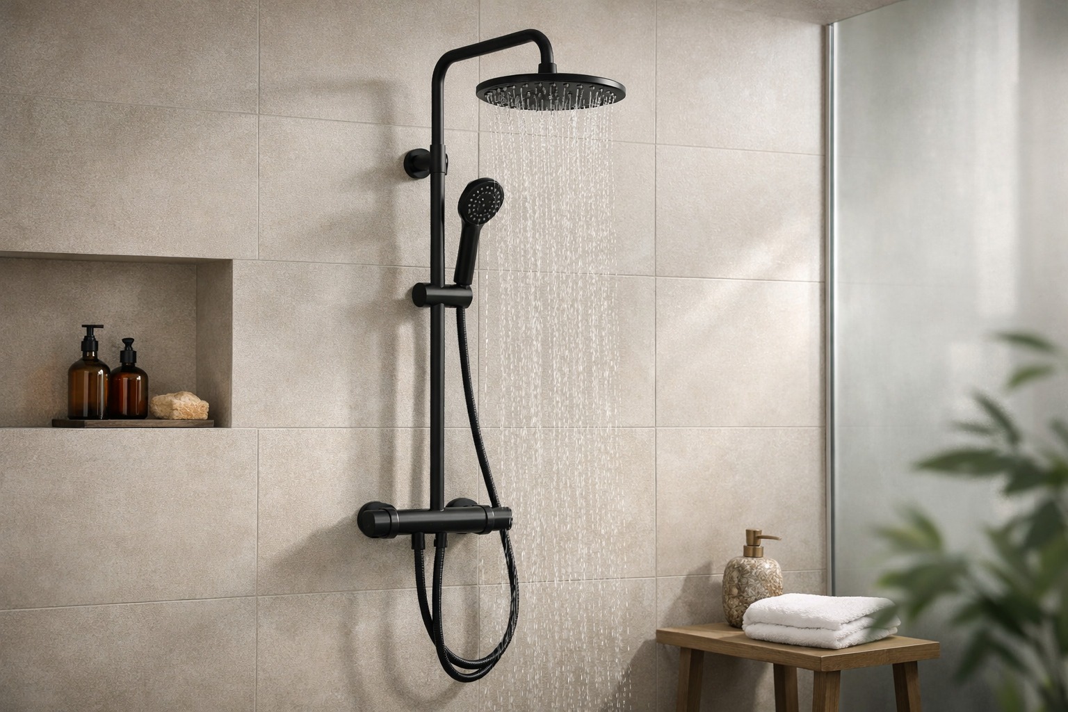 Dacă bateria e inima, coloana e coloana vertebrală, chiar la propriu. Ea ține dușul fix de sus la înălțimea potrivită, oferă un traseu ordonat pentru apă și, adesea, include și suportul reglabil pentru para de mână. În practică, coloana e ceea ce vezi imediat când intri în baie, deci contează și estetic.